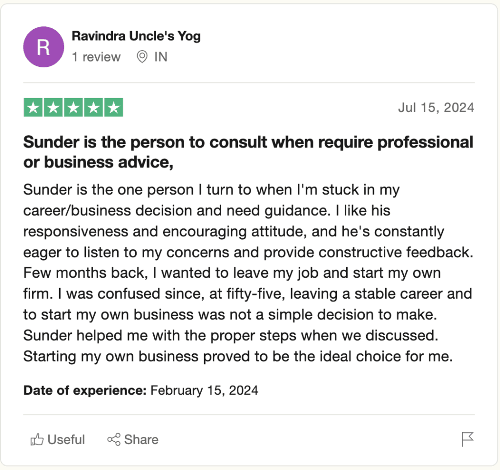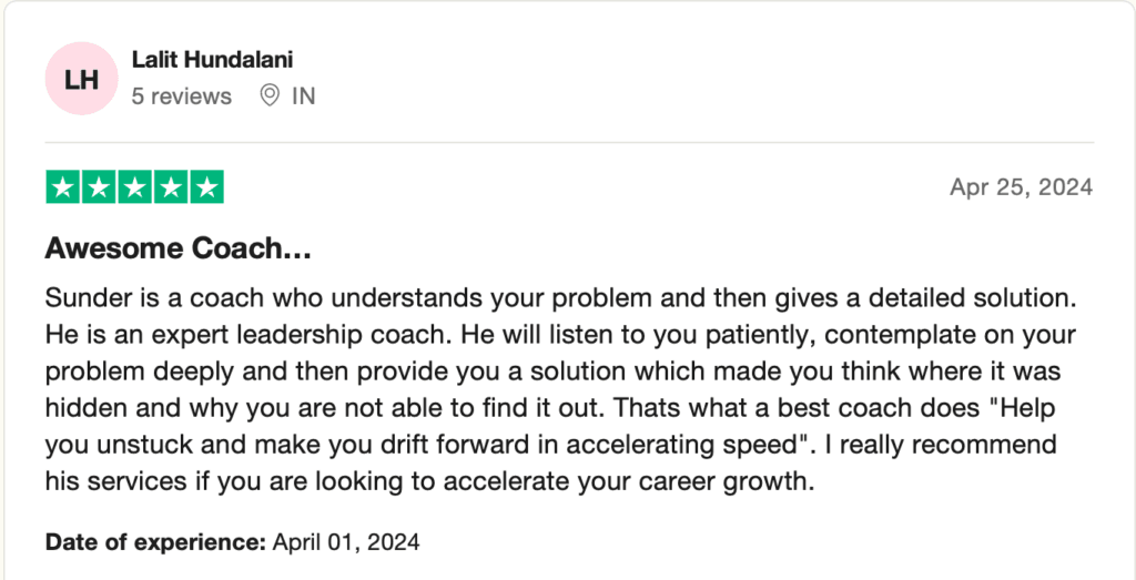 Sunder has worked with 6,000+ professionals and assessed 1,200+ leaders across industries, specializing in 1-on-1 executive coaching for senior leaders. A Professional Certified Coach and John Maxwell Certified Trainer, he is also a recognized expert in LinkedIn mastery, career growth strategies, and leadership excellence.