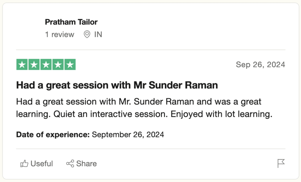 We highly encourage you to attend the live session to maximize your experience. However, if you’re unable to join, please contact us at letsconnect@sunderraman.com, and we’ll provide you with suitable alternatives.